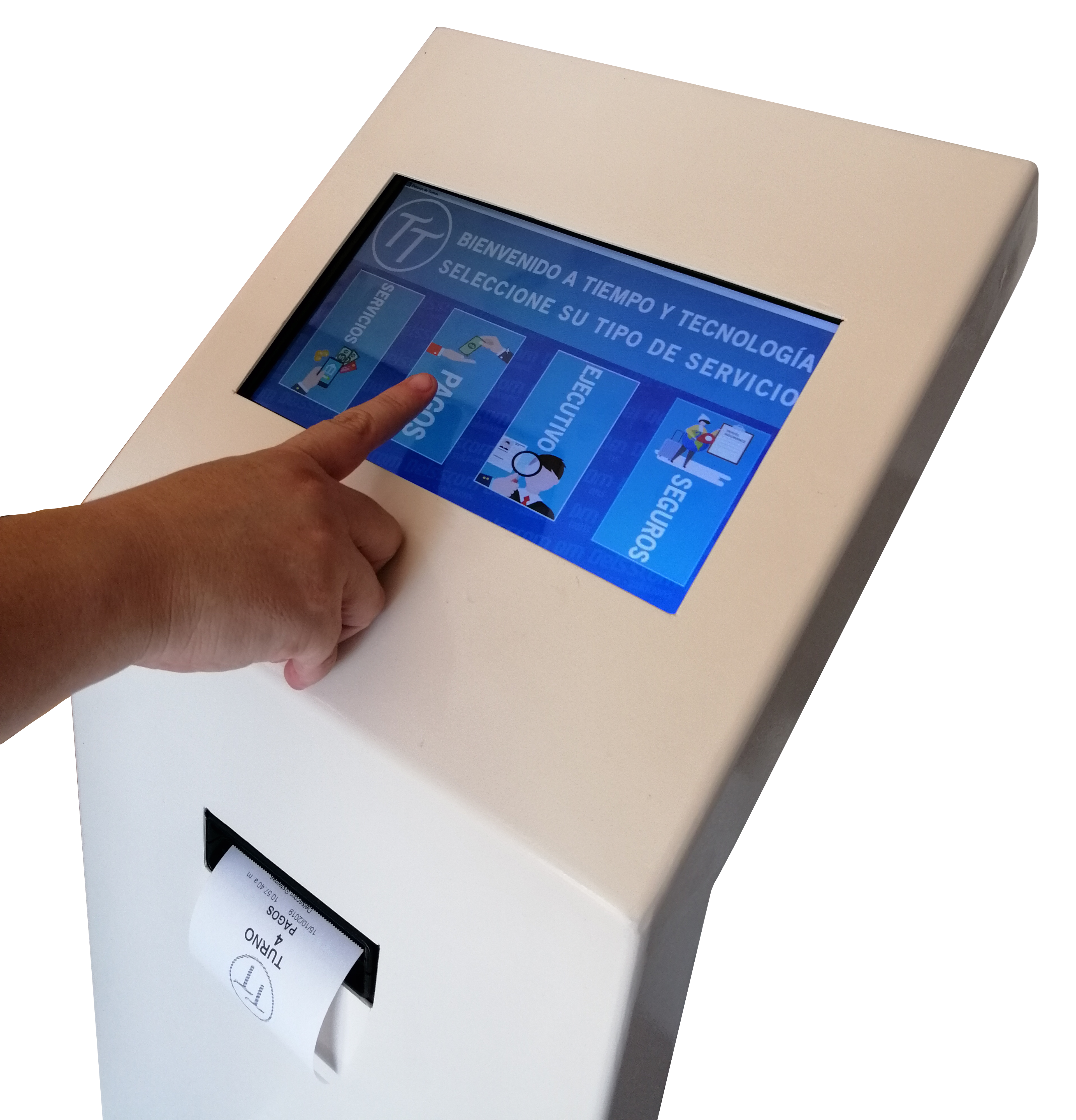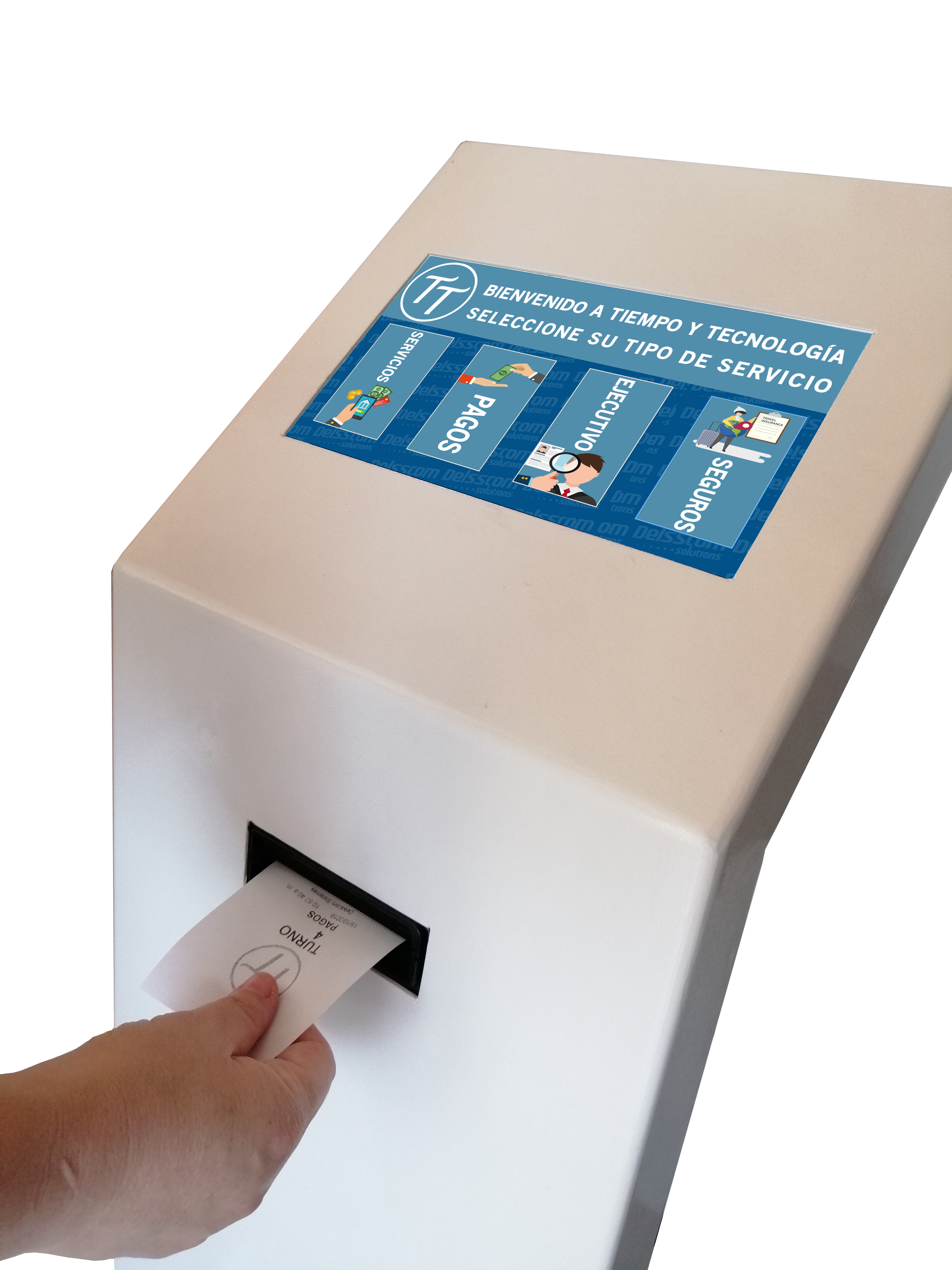 Sistema de expedición y manejo de turnos, solución completa en red , el sistema TurnoPass consta de un mueble expendedor de tickets con turno configurables de 1 a 4 áreas o servicios, una pantalla informativa, la cual irá mostrando los turnos conforme las cajas o módulos los llamen, tiene la posibilidad de mostrar anuncios o videos corporativos.