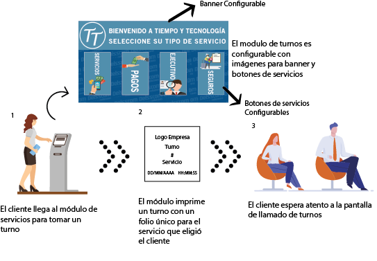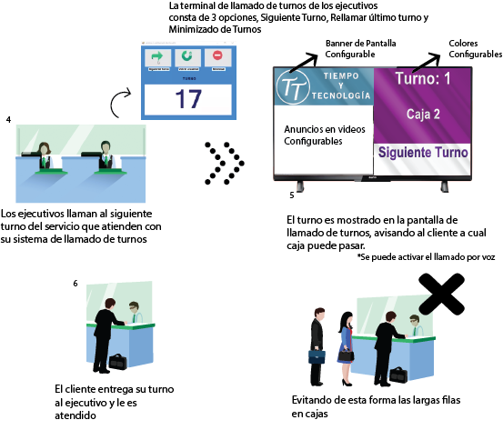 Para el llamado de los turnos incluye la instalación de 1 caja o módulo en su computadora de uso regular, expandible hasta 10